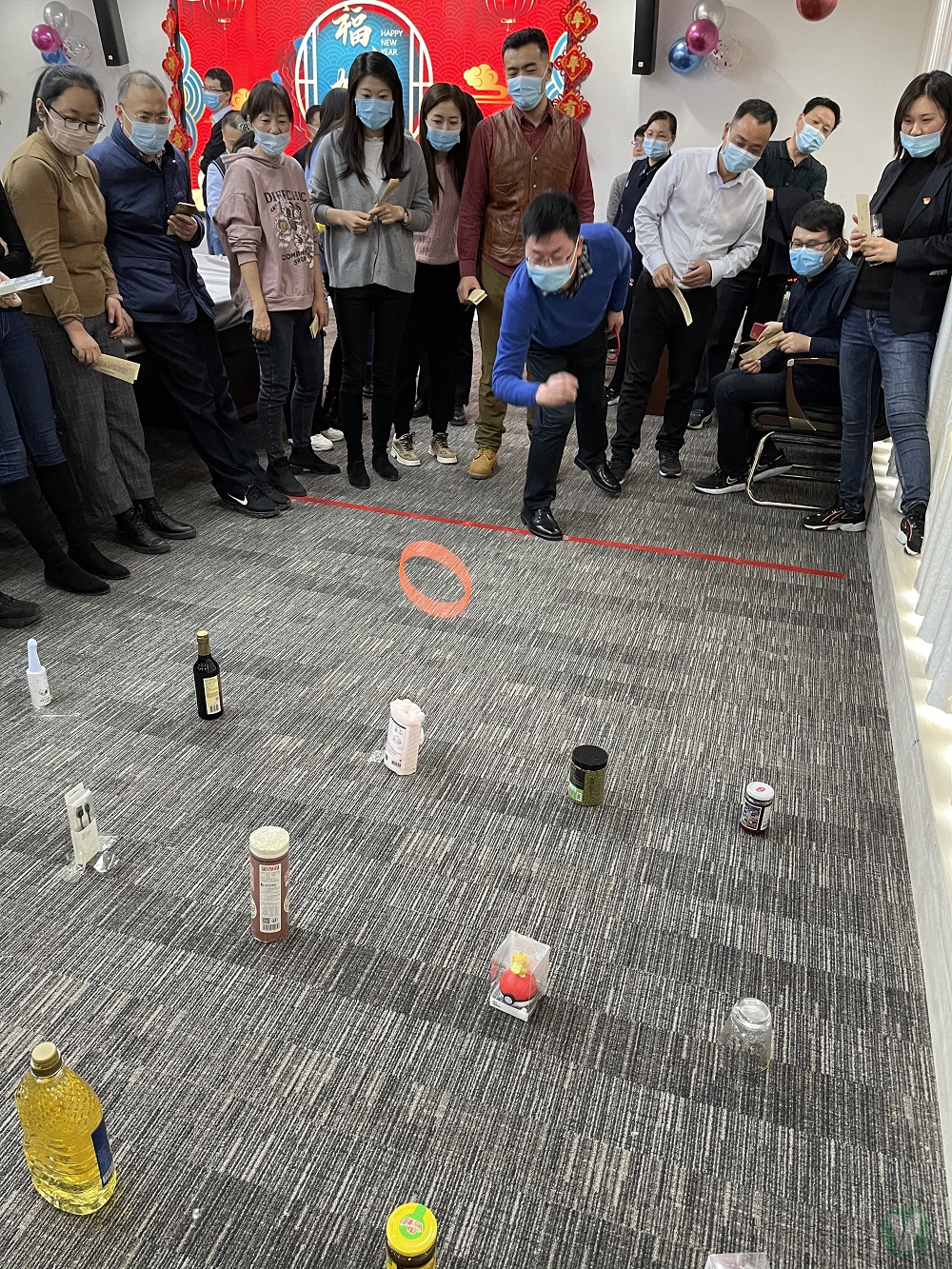本次活動共設套圈、踢毽子、飛鏢、擲骰子等四項娛樂競技游戲,全體職工踴躍參加,在活動過程中,大家全神貫注,身手矯捷,活動現場氛圍歡樂,不時傳出歡聲笑語,洋溢著歡樂、和諧、喜慶的濃厚節日氛圍。為認真落實有關疫情防控通知精神,本次活動從參與人數、場地消毒、單項活動區域劃分等都進行了周密安排,要求所有參與活動人員全程佩戴口罩。